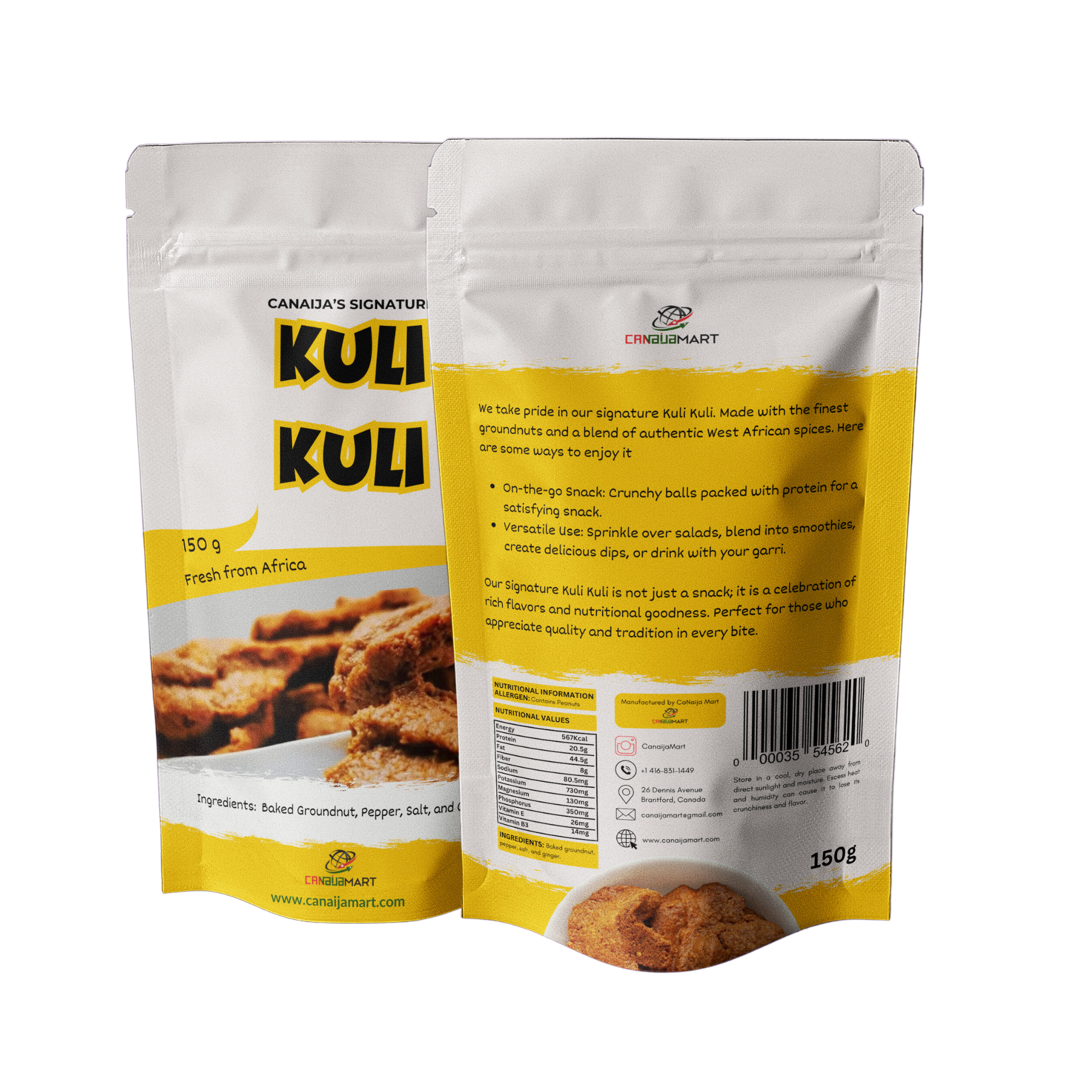 A unique blend of baked groundnut, salt, pepper, ginger and Canaija’s secret ingredients to make a tasty snack.